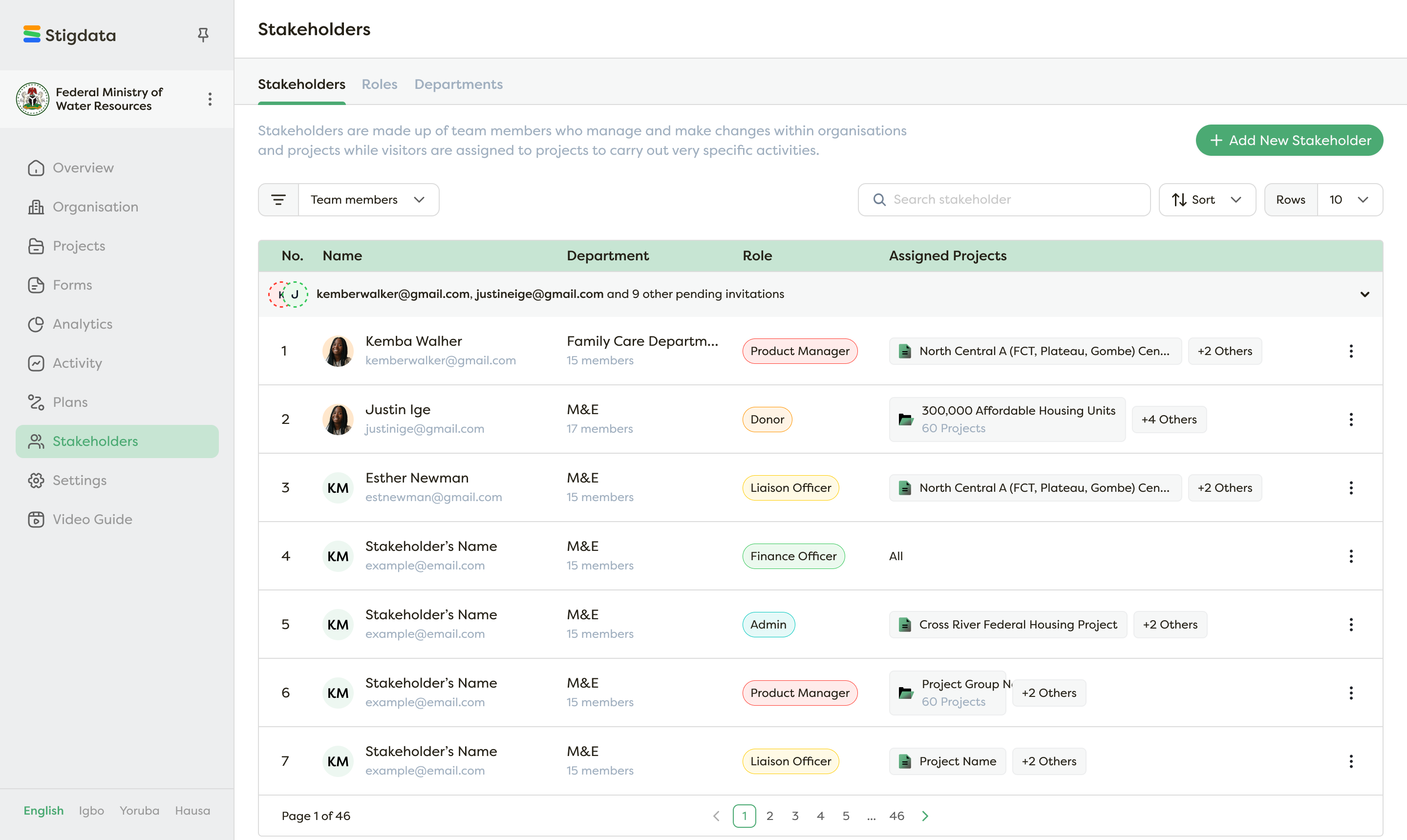 Stakeholder management for collaborative projects, enabling multiple users engage with clearly defined roles and permissions.